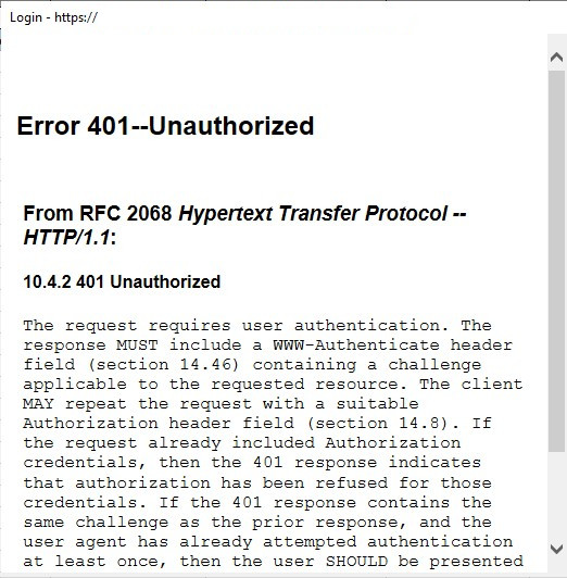 The "Error 401--Unauthorized" page is displayed after the SSO validation process successfully validates the user. Oracle Fusion displays this page. After successful user validation, it seems contradictory to show the "Error 401--Unauthorized" page.