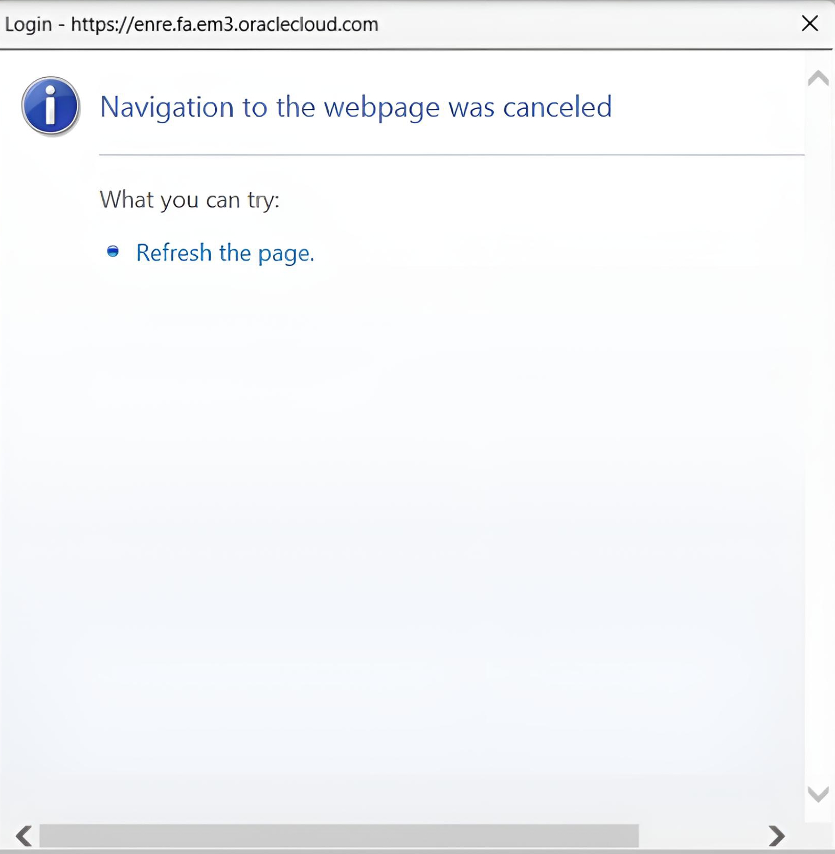 To fix this error, follow the instructions under the topic 'Resolving the error: Navigation to the webpage was canceled.'